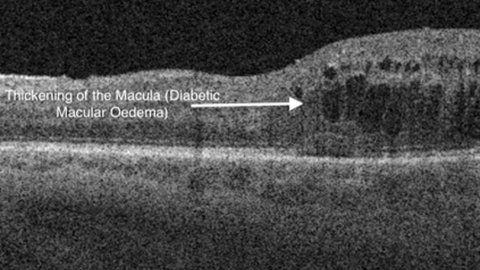 Some patients develop abnormal blood vessels at the back of the eye, as a response to the damage caused by high blood glucose levels. These blood vessels are an attempt by the eye itself to repair some of the damage, but unfortunately the vessels are very delicate and are prone to bleeding spontaneously.